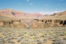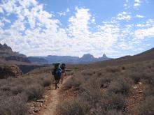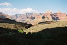 At around 11am, we reached the intersection of the Tonto trail with the path to Plateau Point, one of the best observatories of the Canyon. After setting camp in the lush valley of Indian Garden and having dinner, we set out on a light evening hike to Plateau Point to return to our camp at dusk.